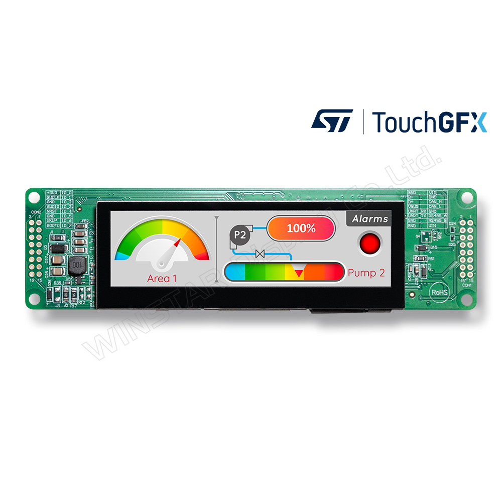 3.9インチの長方形UARTスマートディスプレイ。IPSパネル(WF39FSWASDNG0)に静電容量式タッチパネルと内蔵ファームウェアを組み合わせ、限られたスペースでも柔軟なHMIソリューションを実現します。
