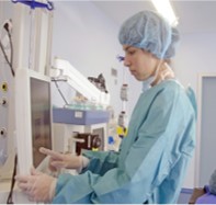 医療現場 施術中の操作も手袋着用のままタッチレスで行えるので、操作の度に手袋の着脱や、消毒をする手間が省け、医療従事者の負担を削減することができます。 |
